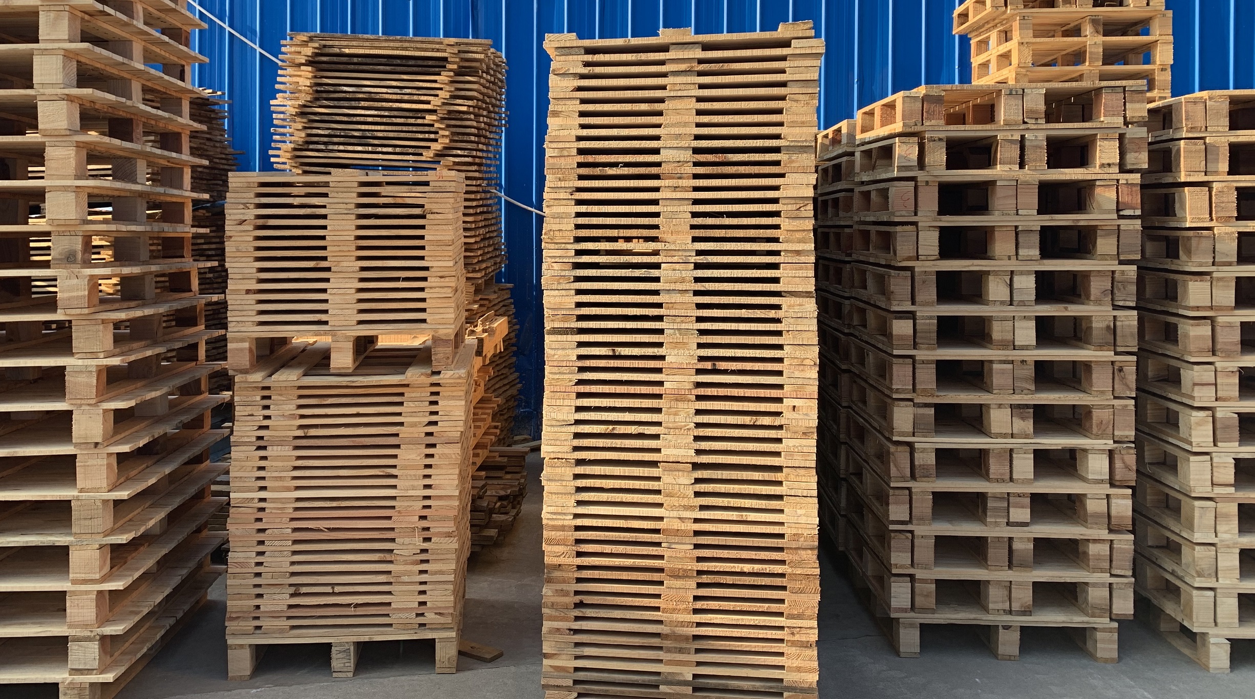 实木托盘以原木为材料,进行干燥定型处理,减少水分,消除内应力,然后进行切割、刨光、断头、抽边、砂光等精整加工处理而形成型材板块